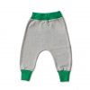 Made from soft, grey marl cotton with a green rib waistband and ankle cuff to add a splash of colour. These harem pants are perfect for both boys and girls. They are sustainable & ethically made in the UK.